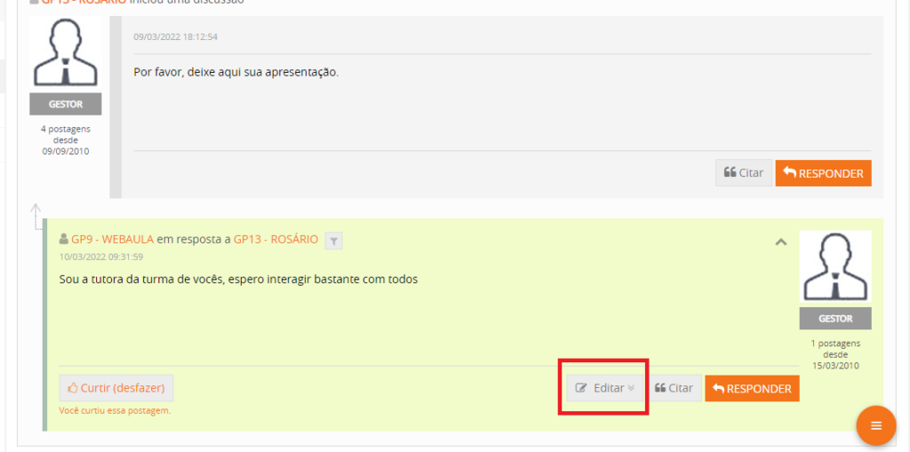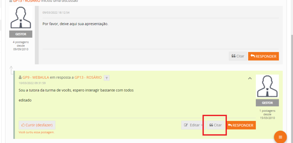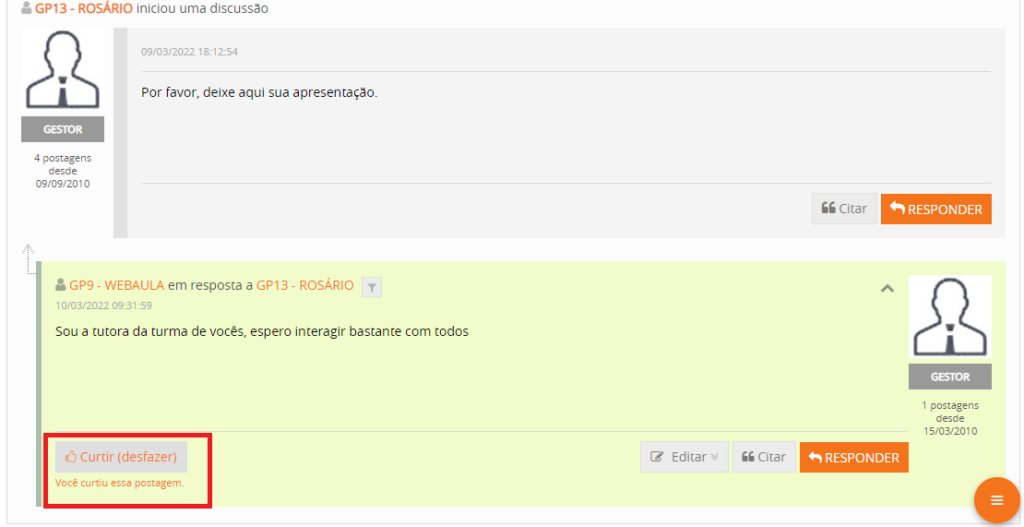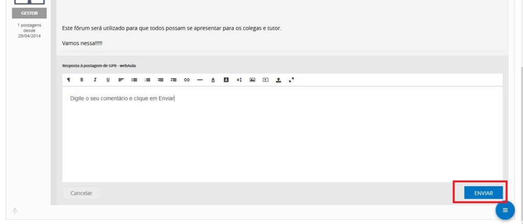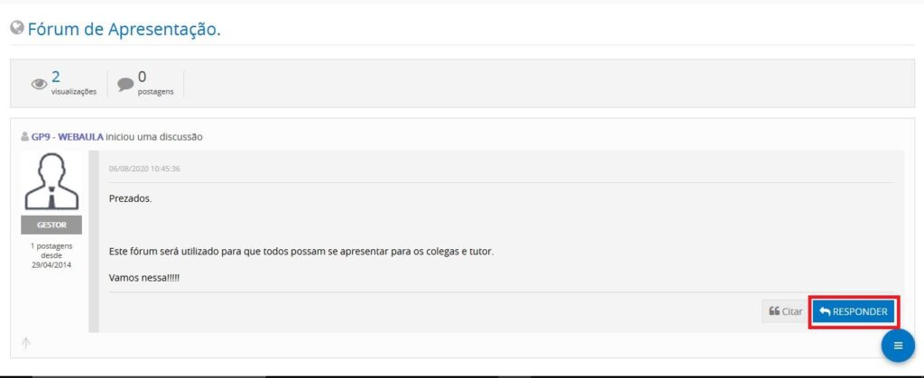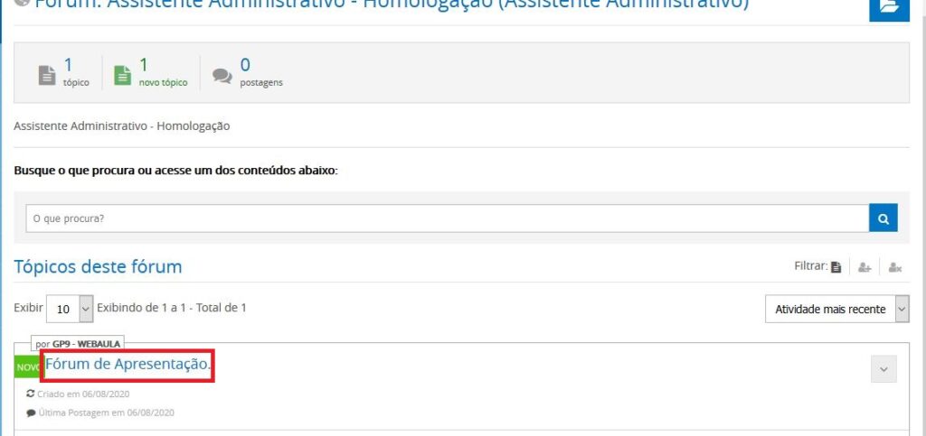 Clique no tópico do fórum, para realizar as postagens nesse tópico.