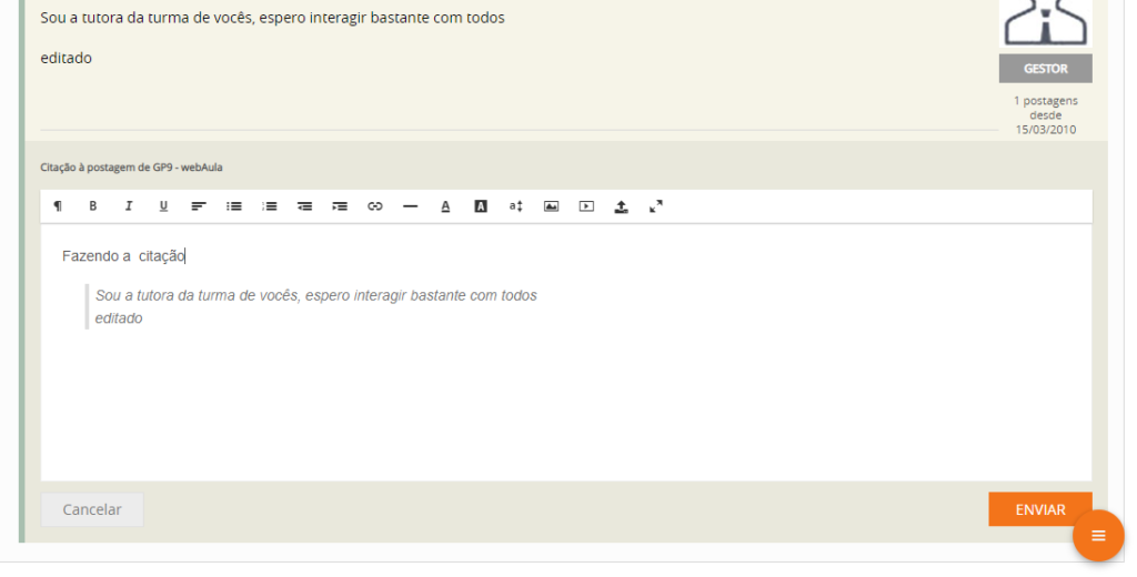 Para editar uma postagem, clique no item em destaque e faça a edição e clique em Enviar.