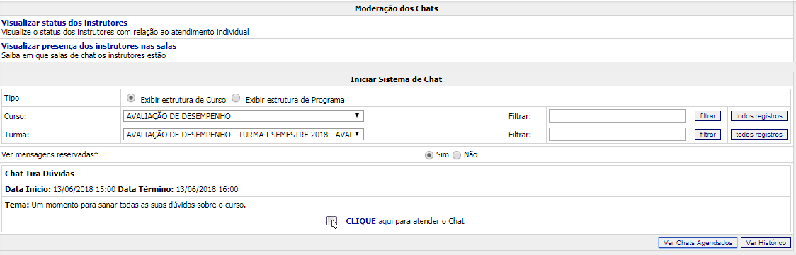 4. Acione o link CLIQUE aqui para atender o Chat correspondente ao Chat que você deseja participar no momento.