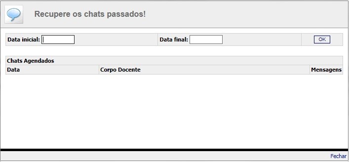 1. Informe as datas inicial e final para filtrar os Chats atendidos no período e, logo após, acione o botão OK. O resultado da busca será exibido.