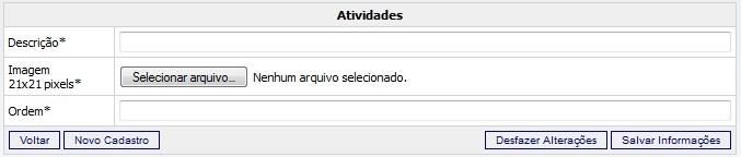 - No campo “Ordem”, determine a ordem de exibição da nova atividade na listagem de itens cadastrados.
