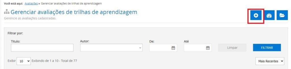 - Avaliação é pré-teste: Se será exibida antes da realização da trilha, validando o aprendizado do aluno;