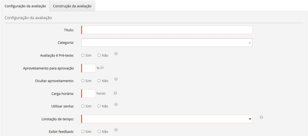 - Carga Horária: Define a carga horária que a avaliação irá representar no Curso.