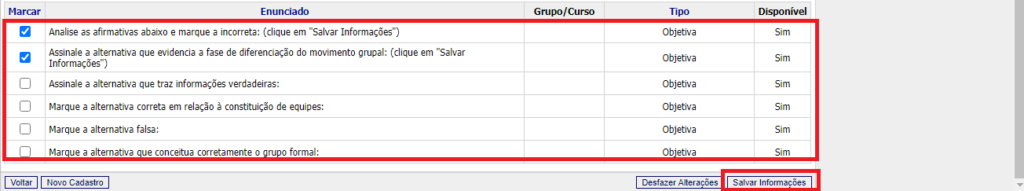 Faça a seleção e clique em Salvar Informações.