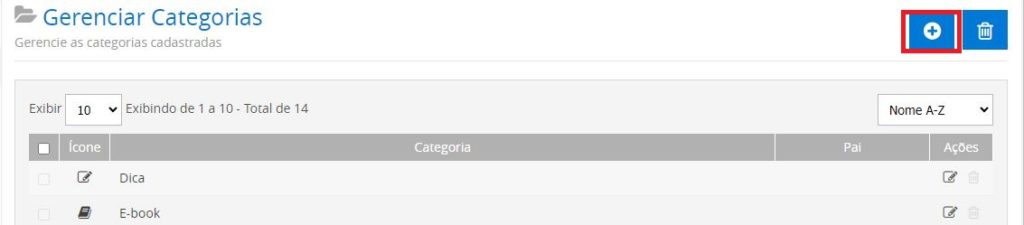Para cadastrar uma nova categoria, clique no item em destaque.