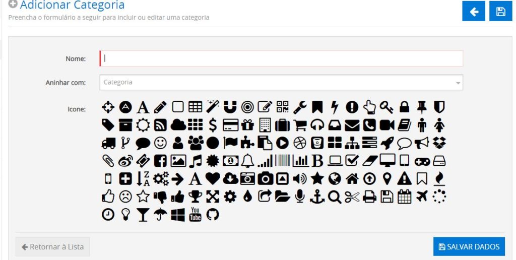 Ícone: Ícone de identificação da nova categoria