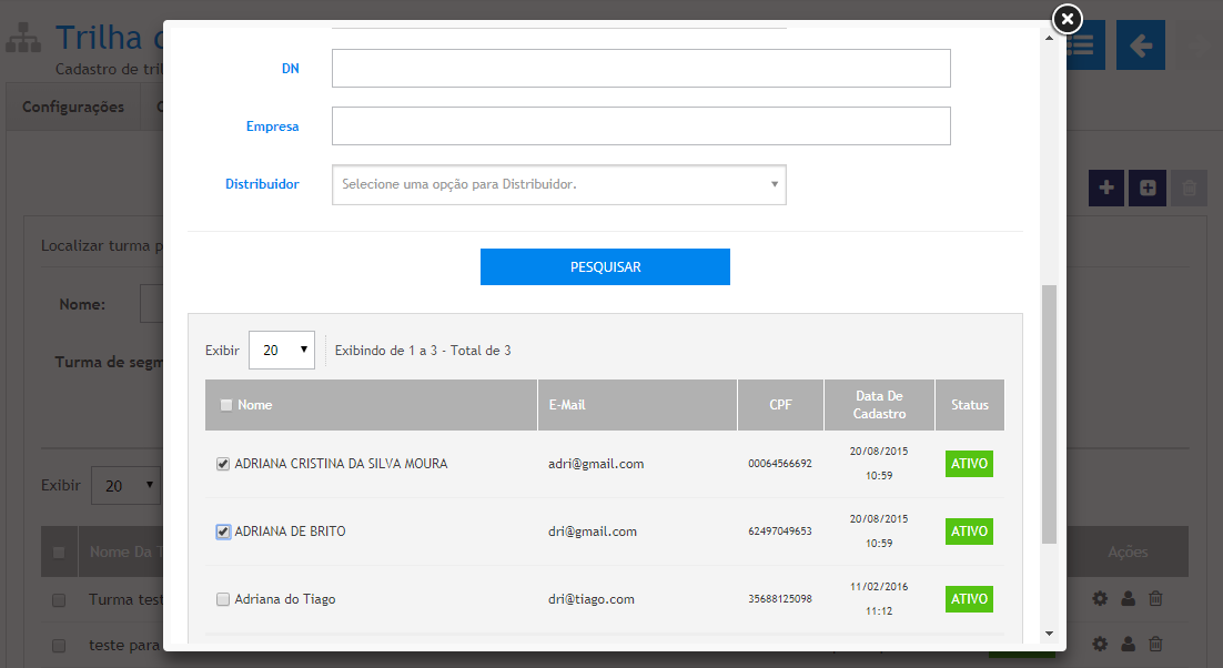 Excluindo Alunos de uma turma de Trilha de Aprendizagem