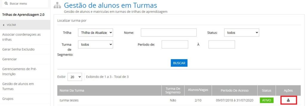 Acessando Gestão de Turma de Trilha