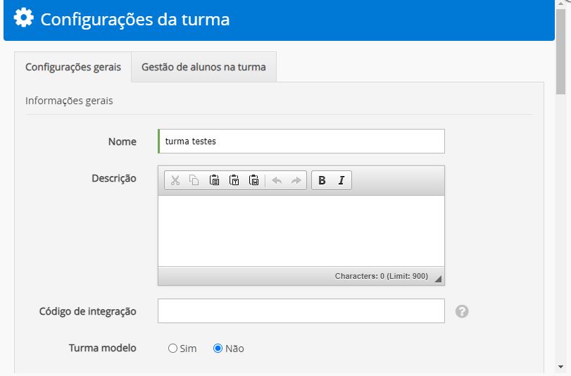 seja do seu interesse, insira uma descrição para a turma. Essa descrição será