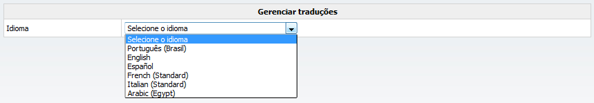 Em Administrativo » Idiomas » Gerenciar Traduções: