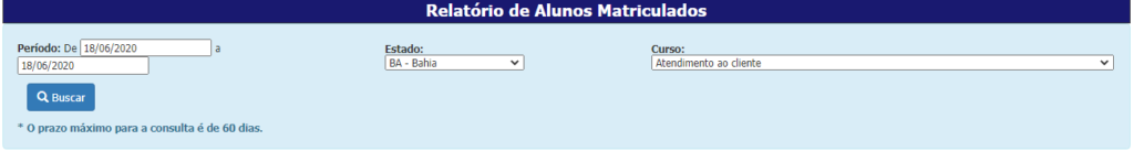 Selecione o período, o Estado, o curso e clique em Buscar.