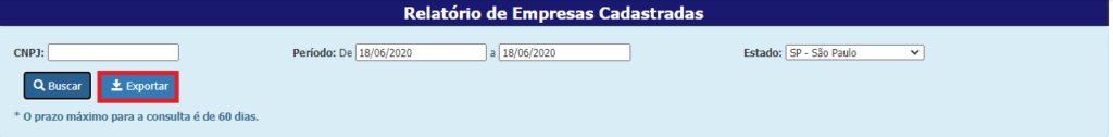 Selecione o CNPJ ou período e o Estado. Clique em Buscar