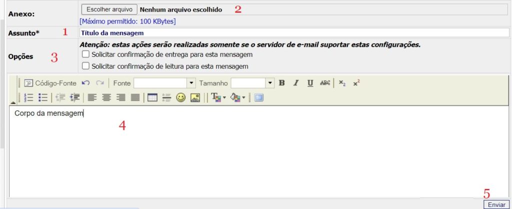 1 – Digite o assunto da mensagem a ser enviada no campo “Assunto”.