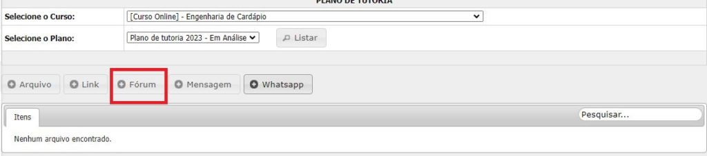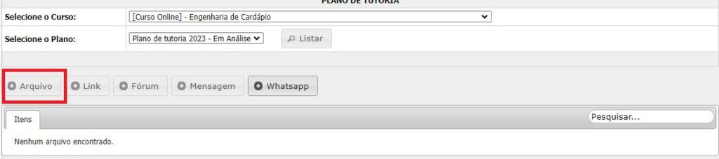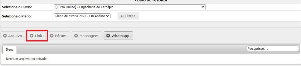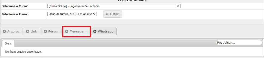 Serão exibidos todos os itens associados ao plano de tutoria.