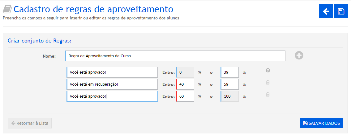 Como cadastrar regras de aproveitamento