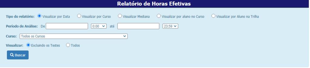 Serão exibidas as horas efetivas dos alunos de acordo com os filtros aplicados.