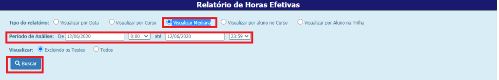 Selecione o tipo de relatório – Visualizar por mediana o período, clique em Buscar.