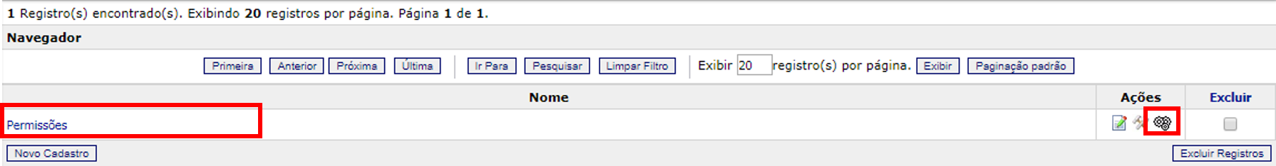 Para realizar a inserção de um novo “Relatório Dinâmico”, clique no item em destaque “Novo Cadastro”, e a tela abaixo será habilitada: