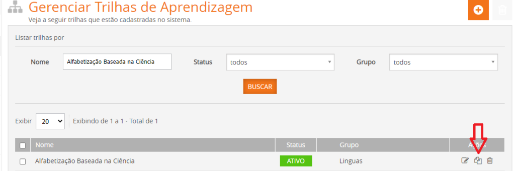 Para duplicar uma Trilha de Aprendizagem 2.0, clique no item em destaque.